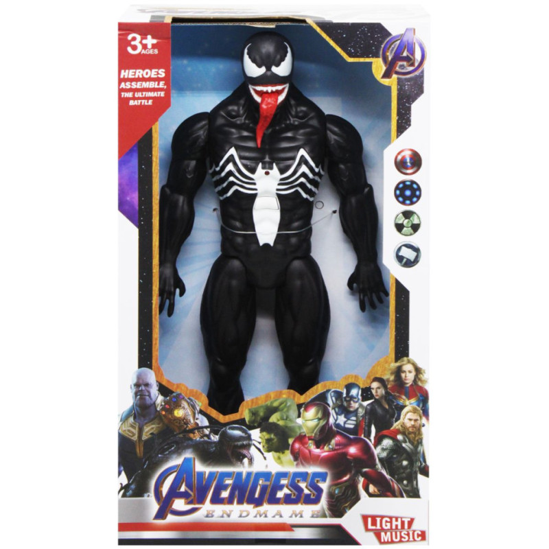 Фигурка в виде супергероя вселенной "Марвел". Выполнена из пластика, хорошо детализированная. Руки и ноги подвижные. Со световыми и звуковыми эффектами - светится лампочка на груди и звуки сражения. Работает на батарейках (идут в комплекте). Высота фигурки - 30 см. Для детей от 3-х лет.