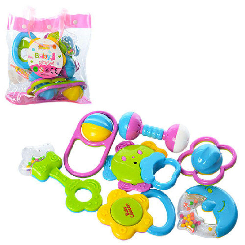 Замечательный и функциональный подарочный набор молодым родителям для малыша включает в себя 7 погремушек, которые можно сложить в сумочку.