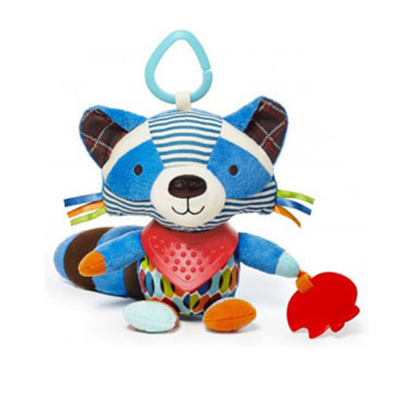 Погремушка мягкая, упаковка - пакет. Размер игрушки - 20 см. Погремушка оснащена кольцом-креплением, выполнена в ярком дизайне, имеет множество интересных для малыша элементов (петельки, жевалки и пр).